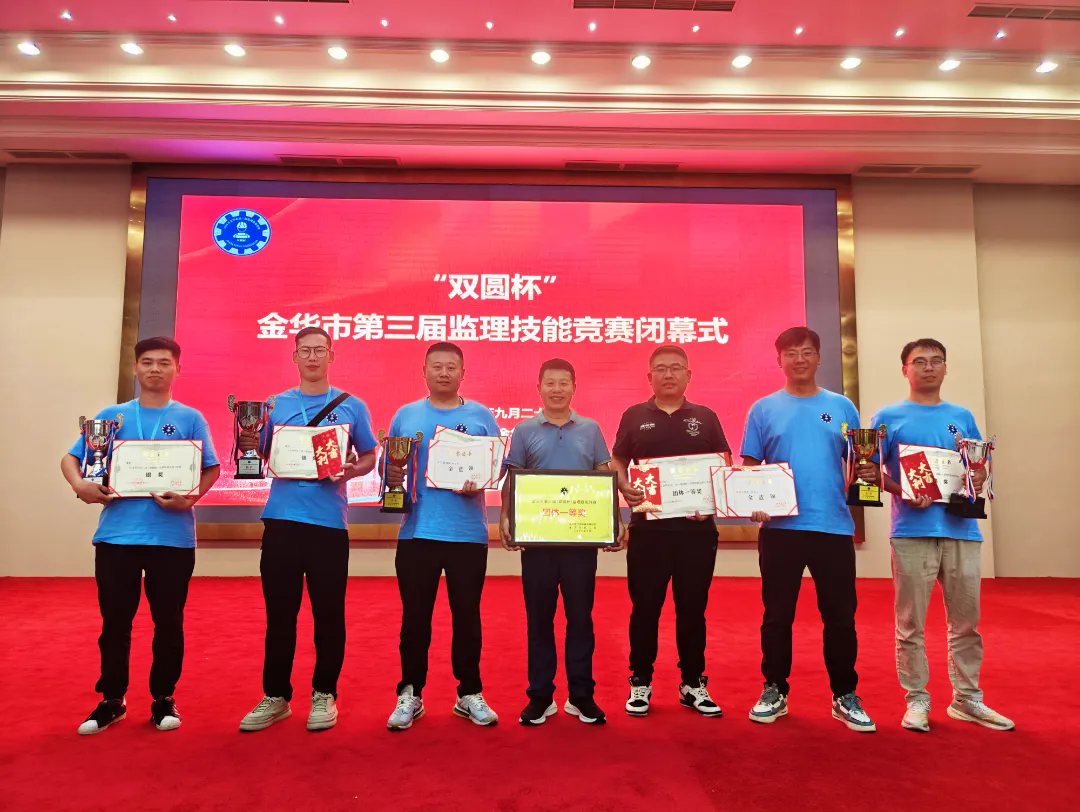 热烈祝贺婺城区代表队获得2024年度金华市第三届监理技能竞赛团体一等奖,致远管理王晓坚获得2024年度金华市第三届监理技能竞赛个人赛金奖(金蓝领)。致远管理张栋、曹丽云、贾骏获得2024年度金华市第三届监理技能竞赛个人赛银奖。