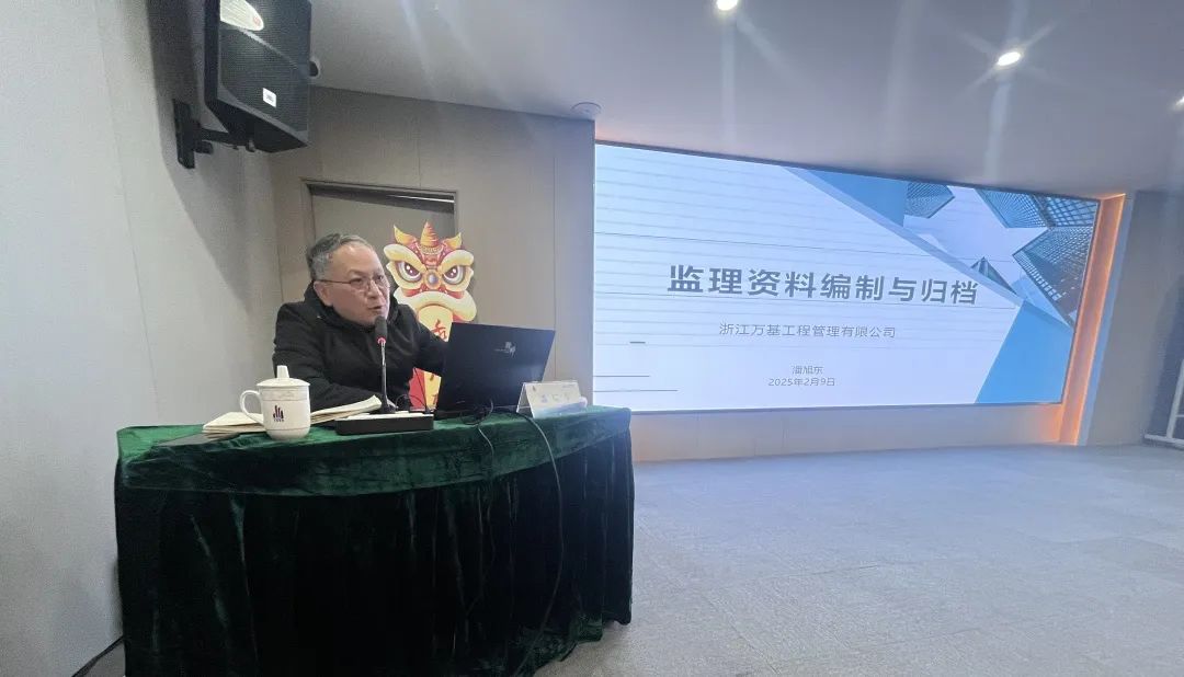 开班仪式简洁而严肃,培训活动正式开启。公司总工潘旭东率先登台,带来关于监理资料编制与归档的专题讲座。他深入剖析了监理资料在工程建设全生命周期中的关键作用,从资料的完整性、准确性对工程质量追溯、合规审查的重要意义等方面进行阐述,为参会人员提供了极具实操性的指导。