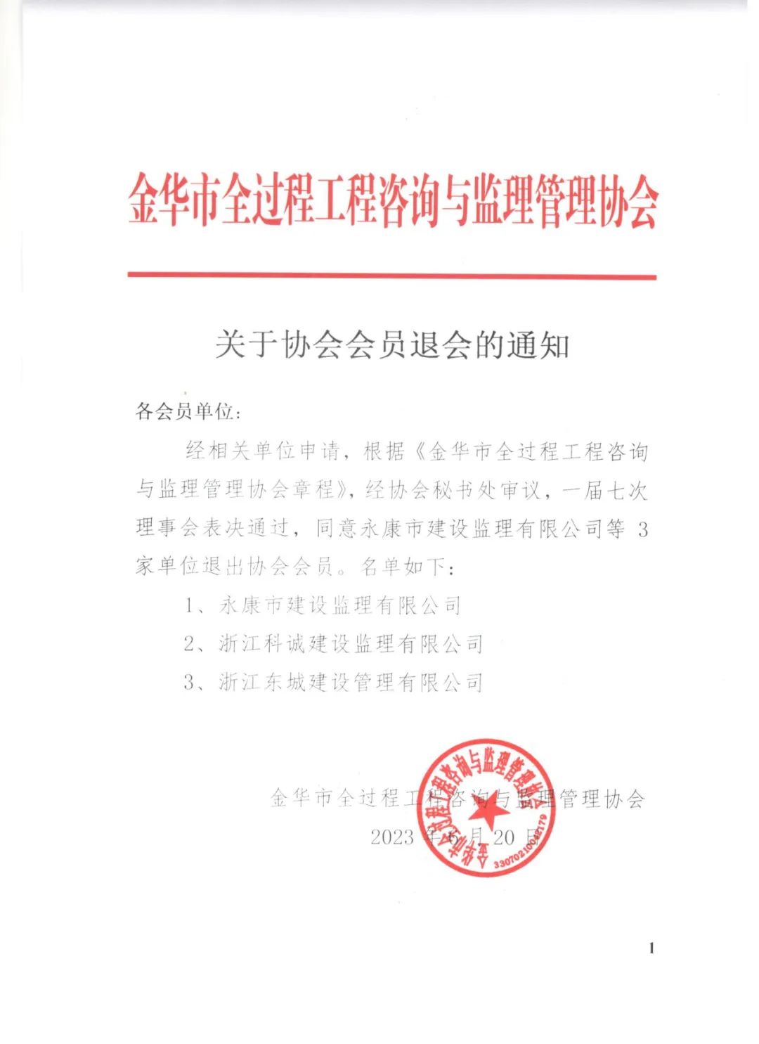 关于协会会员退会的通知