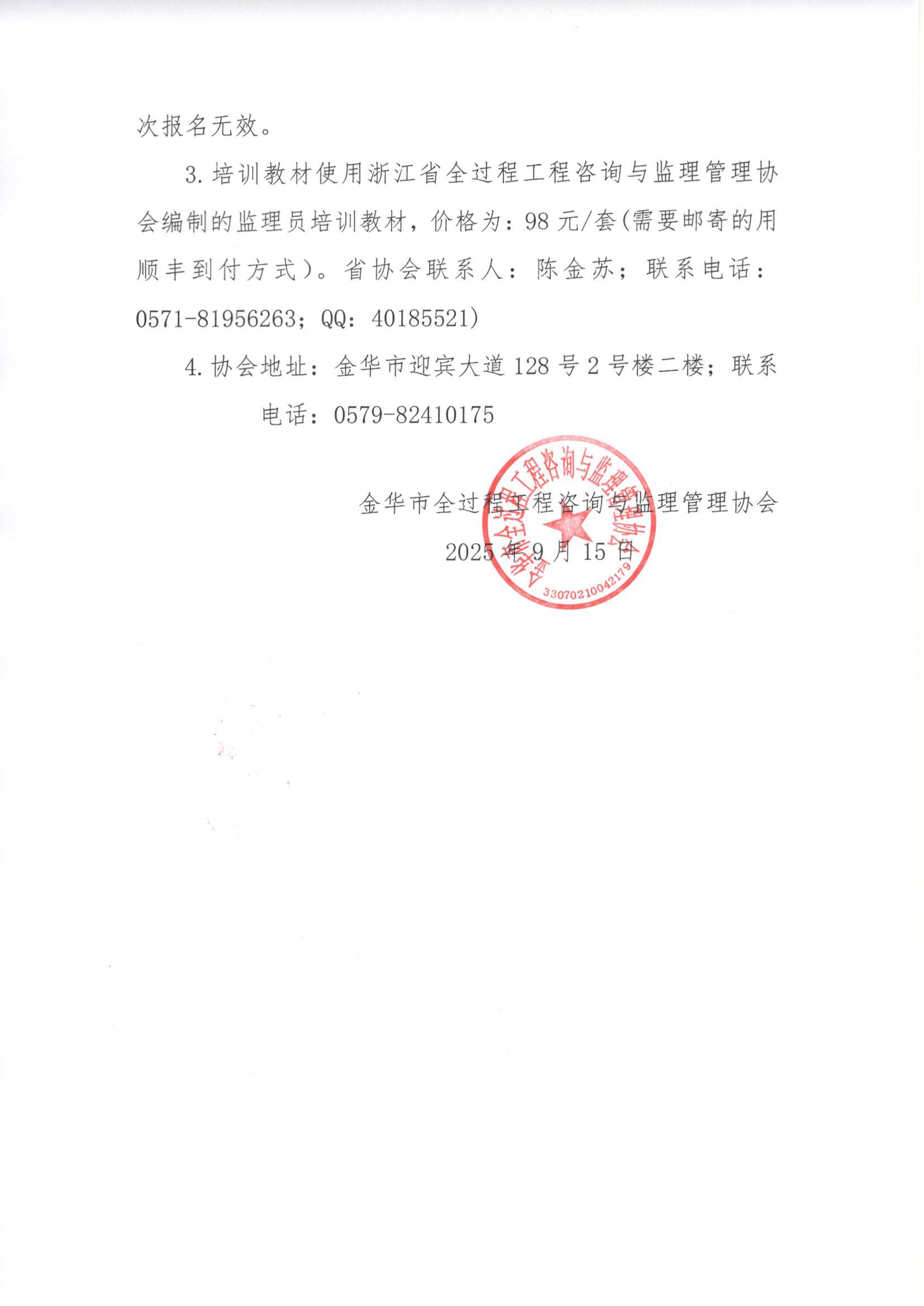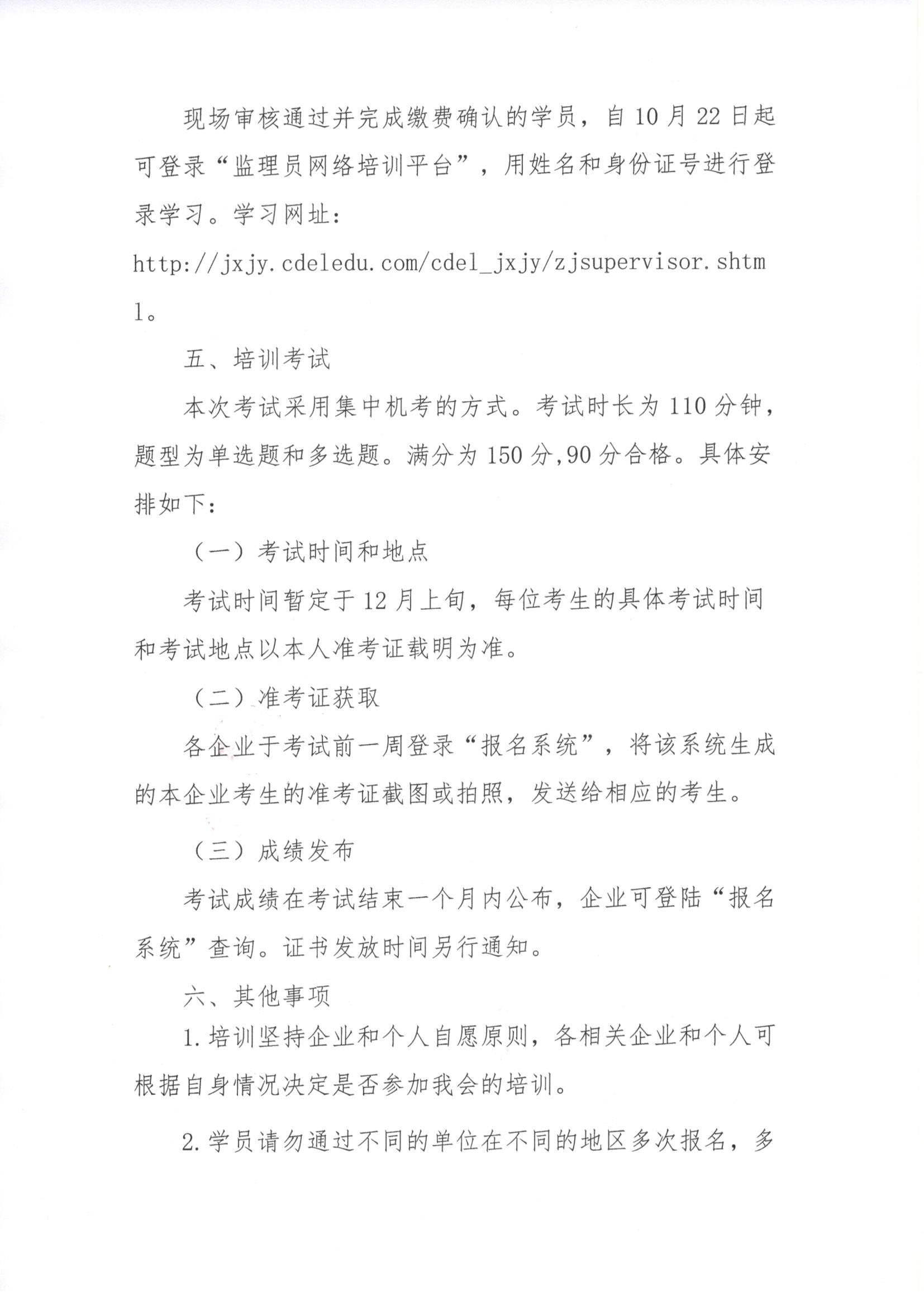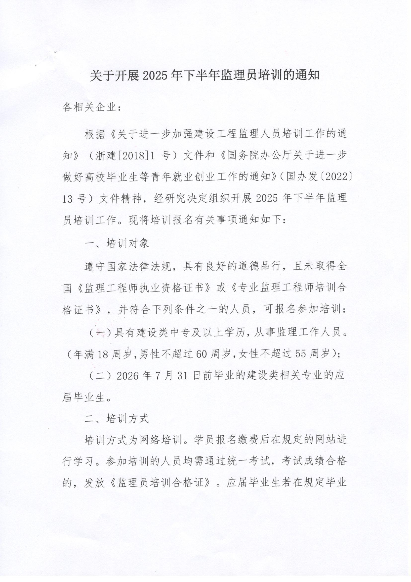 关于开展2025年下半年监理员培训等工作有关事项的通知