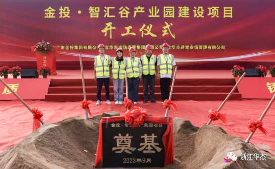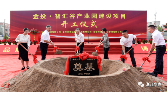 2023年9月26日上午,金投•智汇谷产业园建设项目开工仪式在婺城区蒋堂镇举行。婺城区委副书记、区长胡余仙,副区长胡广辉,市金投集团党委书记、董事长刘永辉,市金投集团党委委员、副总经理兼市场集团党委书记、董事长江军生,婺城区蒋堂镇党委书记杨颖和各参建单位代表参加奠基仪式。