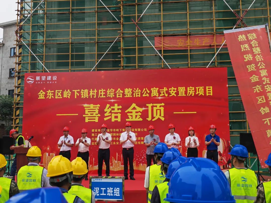 2023年6月13日上午,金东区岭下镇村庄综合整治公寓式安置房项目5幢高层全部封顶,浙江华杰工程咨询有限公司作为全过程造价咨询单位出席封顶仪式。董事长吴晓与金东区政府、区建设局、金东城投、岭下镇政府各级领导及各参建单位负责人一同见证这一重要时刻。