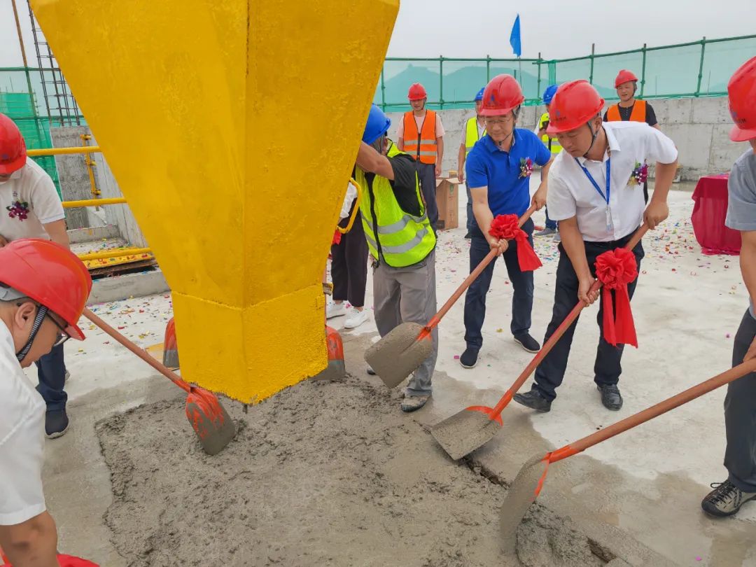 伴随着礼炮齐鸣,出席仪式的领导一同拿起铁锹浇筑砼,此刻的荣耀封顶标志着安置楼主体圆满完成,为当地群众顺利回迁奠定了良好基础。