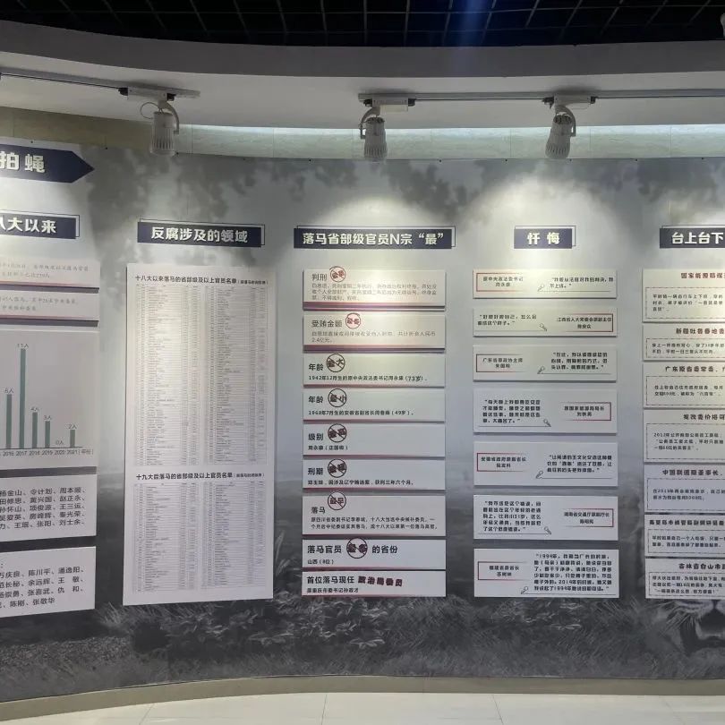 展厅集中展示了十八大以来省内外被查处的反腐典型案例,案例涵盖了贪污受贿、权色交易、滥用职权等多个领域。案例详细阐述了涉案人员如何踏出迈入歧途的第一步,从而一步步身陷囹圄。充分说明了人生如棋,棋局万变,一着不慎,满盘皆输,守规矩才能成方圆。