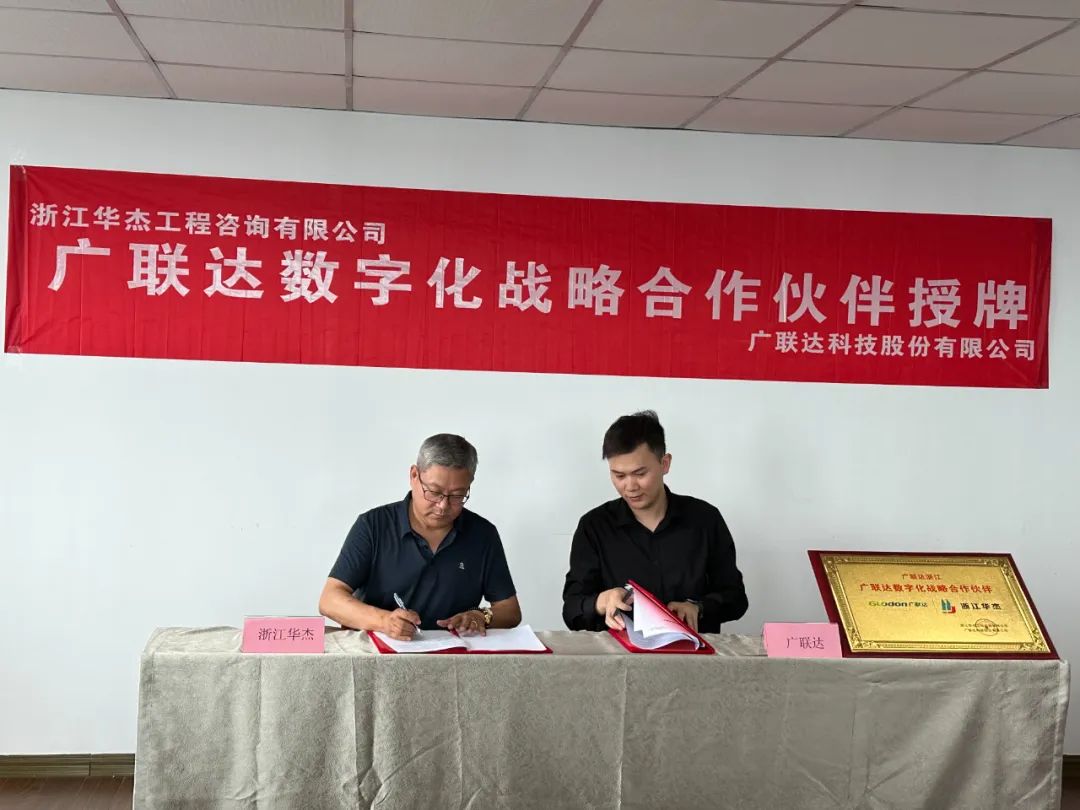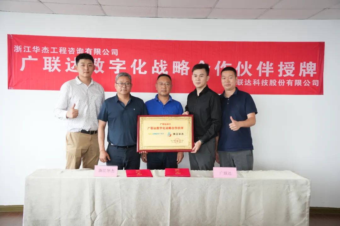 2023年6月13日下午,浙江华杰工程咨询有限公司与广联达科技股份有限公司在浙江华杰会议室签署战略合作协议,举行授权仪式。约定发挥各自优势和品牌影响力,在数字化转型方面开展全方位的战略合作,共同推动企业数字化技术发展和项目精细化管理的深化应用,加强企业自身的数据积累,促进企业整体管理能力的提升。