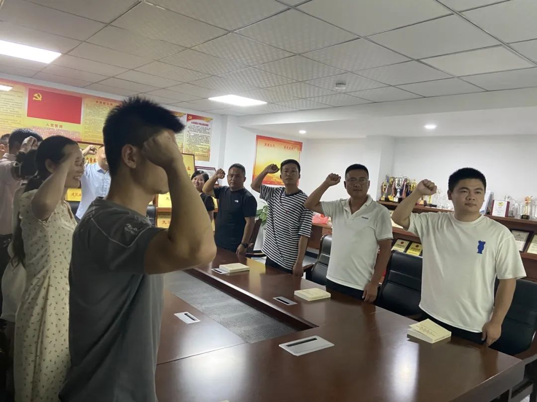 重温入党誓词,初心如磐,踔厉奋发。全体在场党员在书记洪利斌的带领下,重读入党誓词,不忘初心,牢记党员使命。