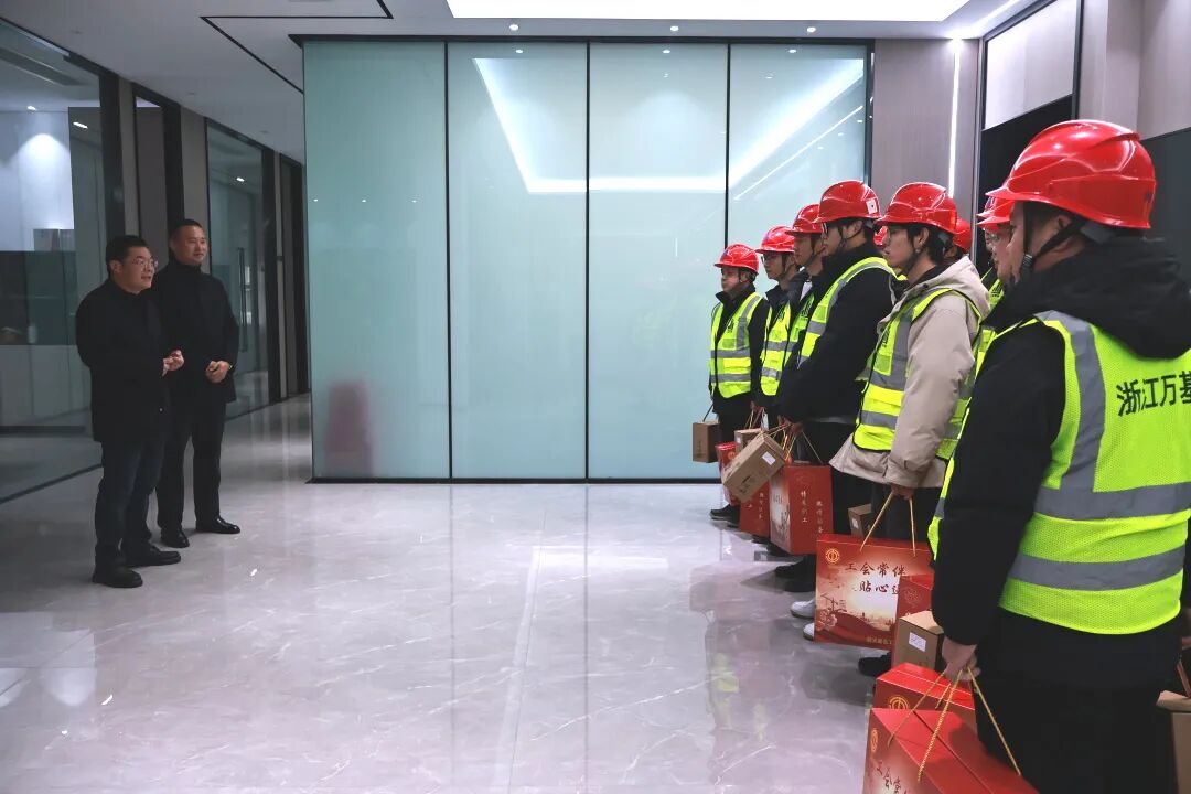 公司董事长涂伟武代表公司全体员工,对武义县总工会姜主席一行的到来表示热烈欢迎和衷心感谢。涂总表示,总工会此次莅临慰问,不仅为一线员工带来了物质上的关怀,更传递了精神上的慰藉与支持,让浙江万基员工们深切感受到了工会组织的温暖与关怀。同时,涂总表示公司也将积极配合工会工作,不断完善员工关怀体系,凝聚团队合力,推动公司各项事业持续健康发展,不辜负总工会的信任与支持。