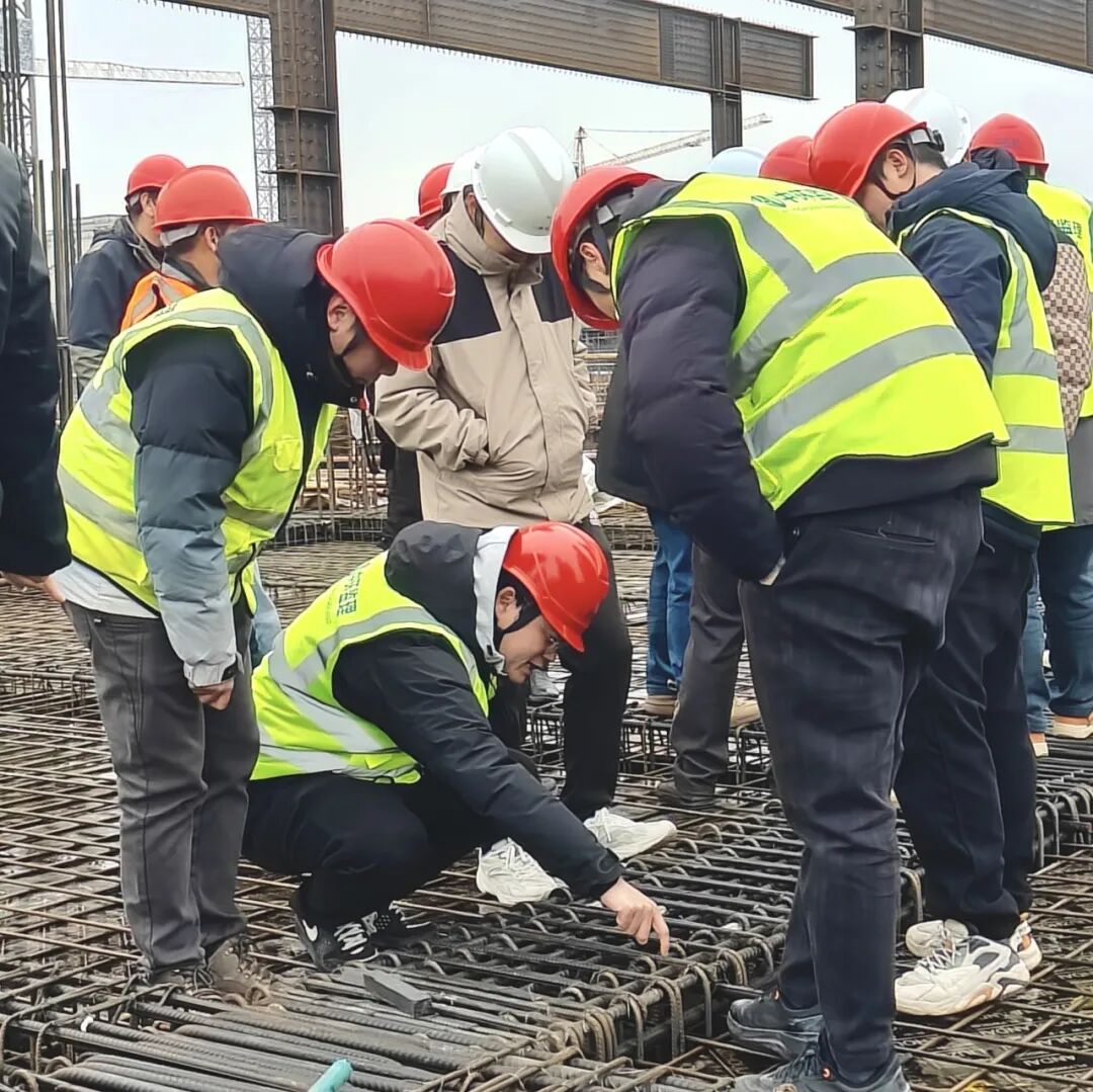 理论源于实践,真知来自现场。全体与会人员深入施工现场,沉浸式观摩型钢混凝土结构施工实体工程,详细了解施工工艺细节、关键工序管控要点及质量亮点。大家认真观摩,不时驻足交流,积极汲取优秀实践经验,为今后同类项目管控提供了生动参考。