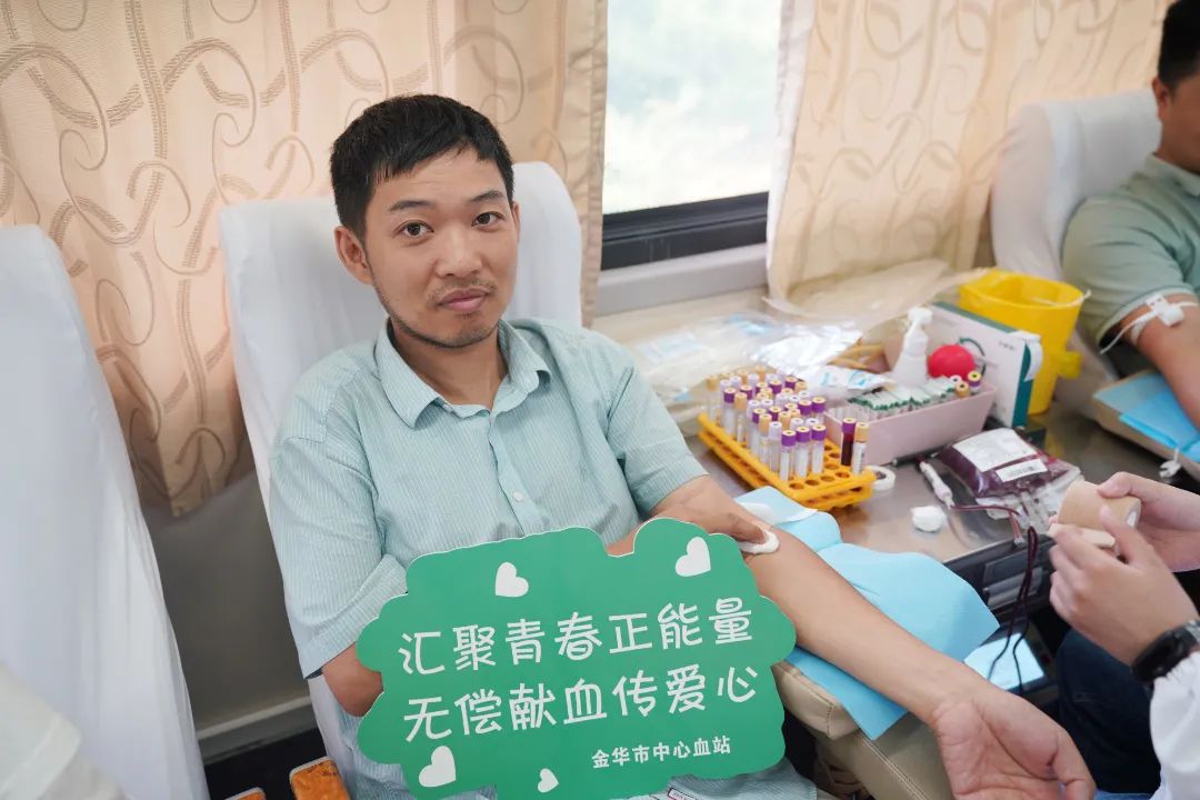 “今年我的血液流速快了许多!”,这是邱翔第二次参加无偿献血活动,他回忆说,去年献血后不到一周,就收到了金华中心血站的短信通知,得知自己捐献的血液救助了一位患者,他觉得很开心。今年他也从献血新人变成了献血老将,还能时不时的安慰旁边的新人。医务人员向他解释,“夏天,我们的血管条件相比冬天会好很多,所以血液的流速也会加快。”