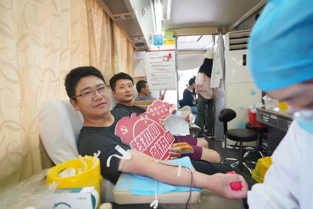酷暑炎热,依旧挡不住大家的热情。大家有序排队,依次进行信息登记、测量血压、血液初筛、静脉采血等环节。在献血车内,大家互相鼓励,用热血传递着承载着爱与希望的温暖力量。